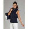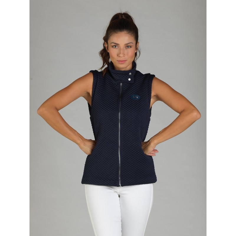 Women’s Zippered sleeveless vest, featuring a mock turtle neck with metal snap fasteners.