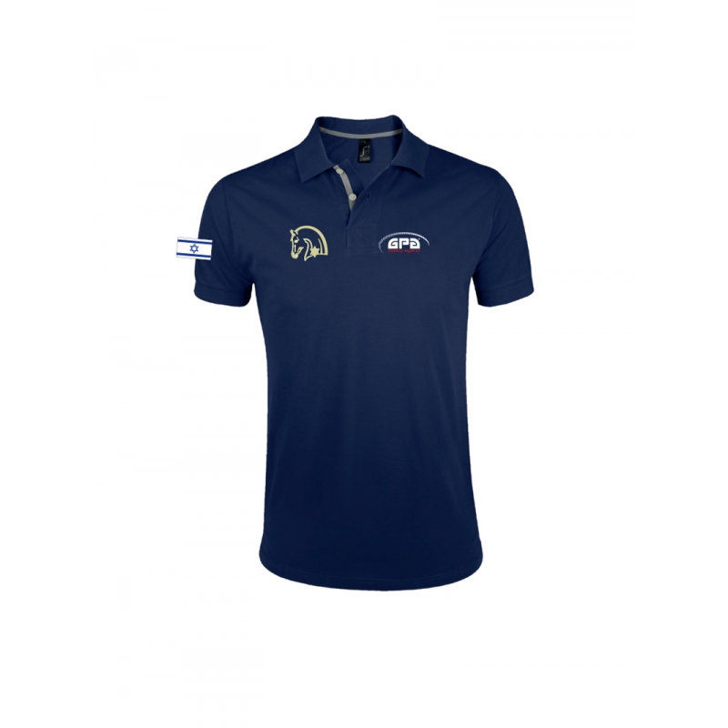 Short sleeves polo. 100% very nice quality of knitted cotton. Embroideries: Israel flag on the sleeve, GPA logo heart side, TEAM ISRAEL on the back.